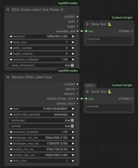 This node is sort of the one that started this collection of nodes. It is a fairly straightforward node based heavily on the Empty Latent Picker node from ComfyUI_essentials. Most of the functions are pretty self-explanitory. Landscape and portrait resolutions can either be included or excluded, and one can define what the minimum landscape and the maximum landscape resolutions should be.