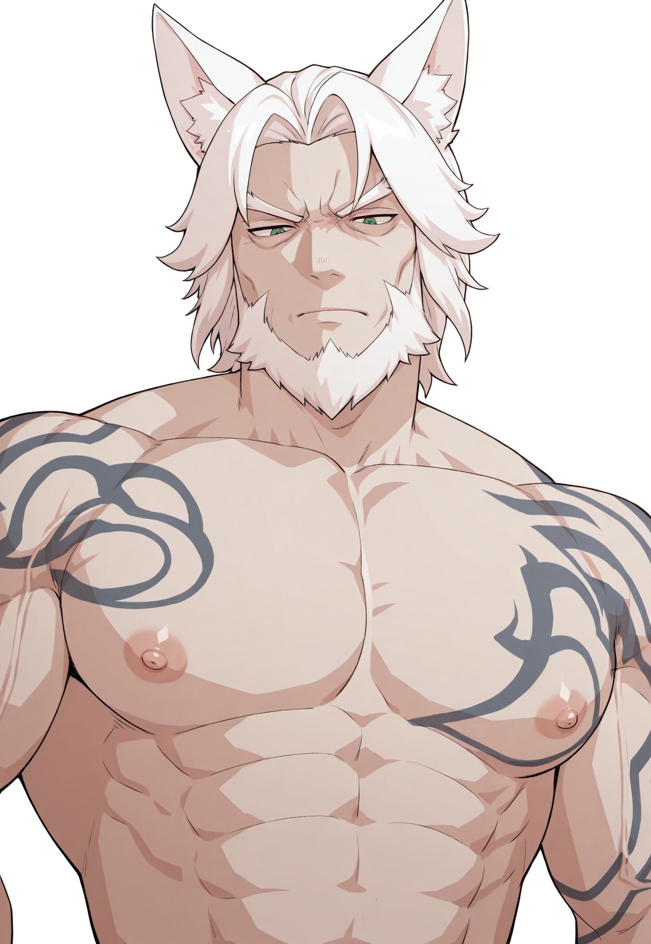 基础:hoolay_hsr,白发,动物耳朵,狐狸耳朵,绿眼,面部毛发,胡须,尾巴