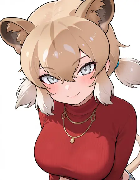 [외모] transvaal lion \(kemono friends\), 사자 소녀, 사자 귀, 동물 귀, 동물 귀 털, 추가 귀, 사자 꼬리, 꼬리, 다색 머리, 이톤 머리, 흰 머리, 갈색 머리, 연한 갈색 머리, 사이드록, 트윈테일, 짧은 트윈테일, 머리 끈, 눈 사이의 머리, 머리로 보이는 눈, 짧은 머리, 회색 눈,