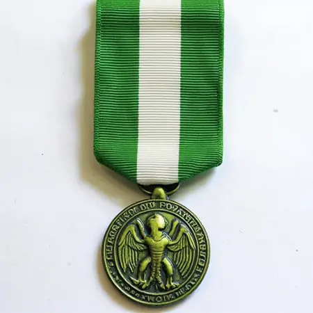 medal of (対象), (説明), (リボンの色/説明), 白い透明な背景。