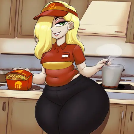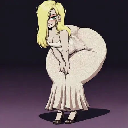 태그: billieburgerkurger, 금발, 긴 머리, 한쪽 눈 위의 머리카락, 녹색 눈, 보석, 두더지점, 메이크업, 귀걸이, 통통함, 두꺼움