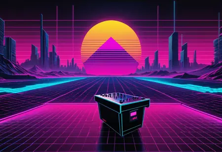 添加霓虹灯光、复古载具、线框山脉、合成音效天空