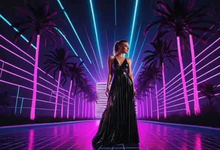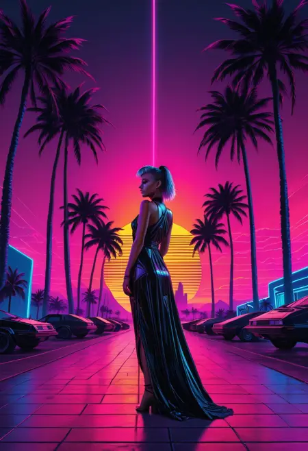 此 LoRA 可将任何场景转变为具有风格化的 Synthwave 风格世界,融合复古未来主义的霓虹美学与超现实环境。它实施完整的“世界形态”转换,改变光照、氛围、景观及道具,呈现出梦幻而怀旧的 80 年代风格愿景。