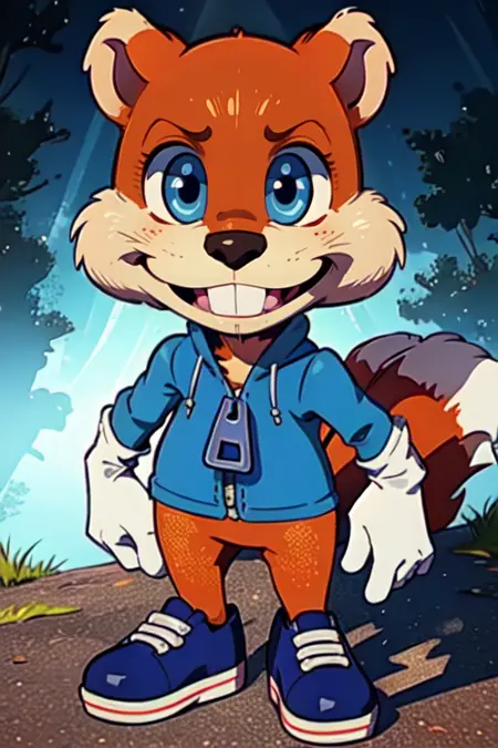 スニーカー、白い手袋、青いジャケット、ジッパー、長袖