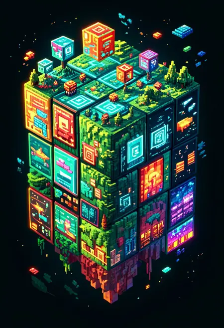 It's a mish mash of world morph, mixed with minecraft skyblock. It's not meant to always do pixelated, but mix it up with your favorite style loras.