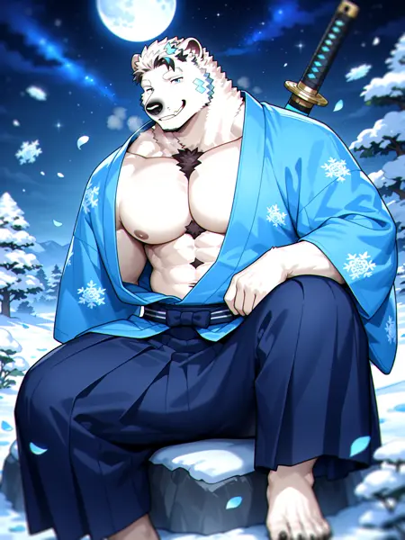 Jack Frost, shirtless, swimming shorts, bare feet (optional)