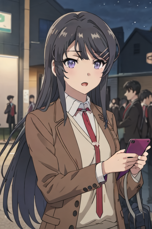 THIS MODEL HAS TWO FILES. YOU NEED TO USE THEM TOGETHER!!!. In this case, you need to download both sakurajima_mai_seishunbutayarou.pt and sakurajima_mai_seishunbutayarou.safetensors, then use sakurajima_mai_seishunbutayarou.pt as texture inversion embedding, and use sakurajima_mai_seishunbutayarou.safetensors as LoRA at the same time.