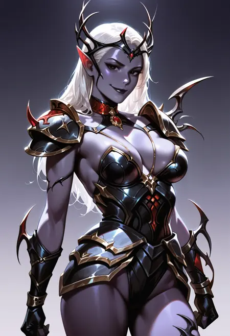 目前关于这个角色的官方艺术图非常少,游戏内的模型也相当粗糙,因此如果你改动她的服装,她看起来就会像一个普通的黑暗精灵女性。这个模型也可以当作她盔甲的服饰LoRA使用。