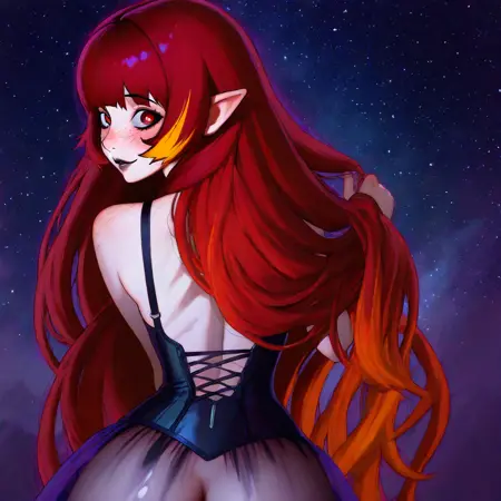 唤醒库莉蜜,这位融合了哥特魅力与精灵优雅的迷人吸血鬼老婆。她拥有瓷白肌肤、雀斑脸颊、迷人的双眸,以及披散的深红长发,发丝闪耀着铜色光泽,尽显黑暗幻想的梦境。她丰满的沙漏形身材、黑色双唇与尖耳,完美呈现了天野喜孝的风格。