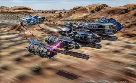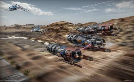 使用触发词 'podracing',可生成《星球大战前传1:幽灵的威胁》中出现的竞速飞船。模型在24张高质量的不同竞速飞船图像上进行了训练。
