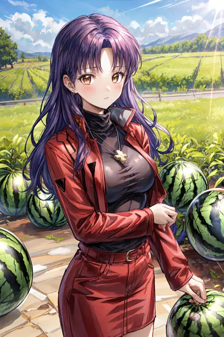 두 번째 유니폼: 검은 스웨터, 십자가 목걸이, 높은 칼라 드레스, 빨간 재킷, 연필 스커트, 빨간 스커트