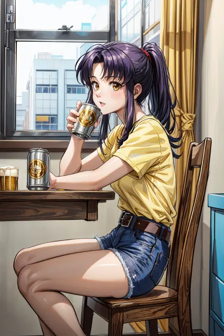 캐주얼: 풀테일, 노란 티셔츠, 탱크탑, 청바지, 벨트