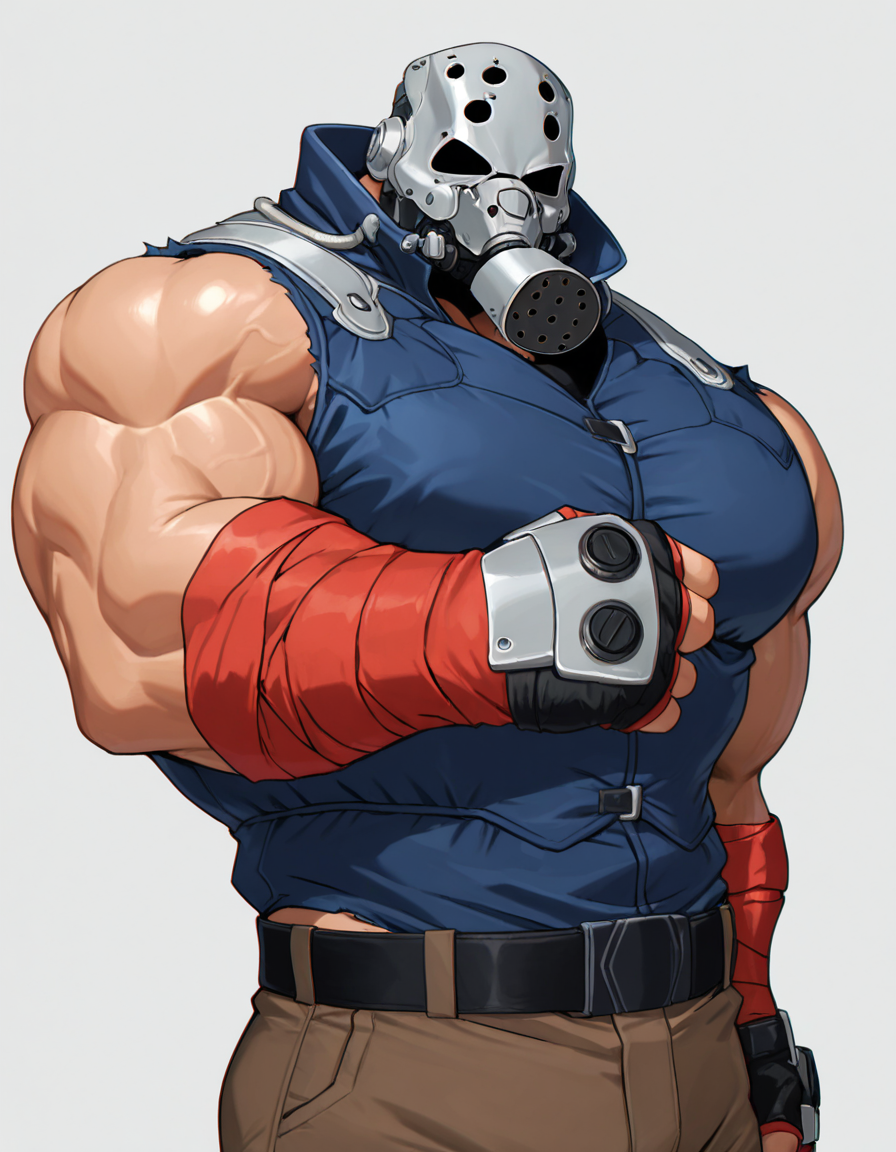 クラシックな衣装: マスク、無毛、包帯を巻いた腕、指なし手袋、ベスト、ブーツ、腕バンド、ズボン