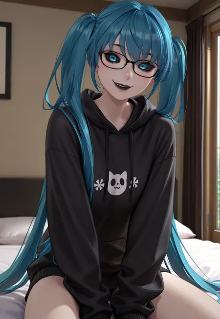 a Forgotten Umbra Witch and close friend of Miku Hatsune. LoRA Trained with 30 images from TS4 Screenshots. Use prompt: “yyb miku, with long blue twin tail hair, vibrant blue eyes, glasses, black lips.”