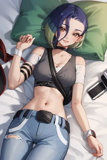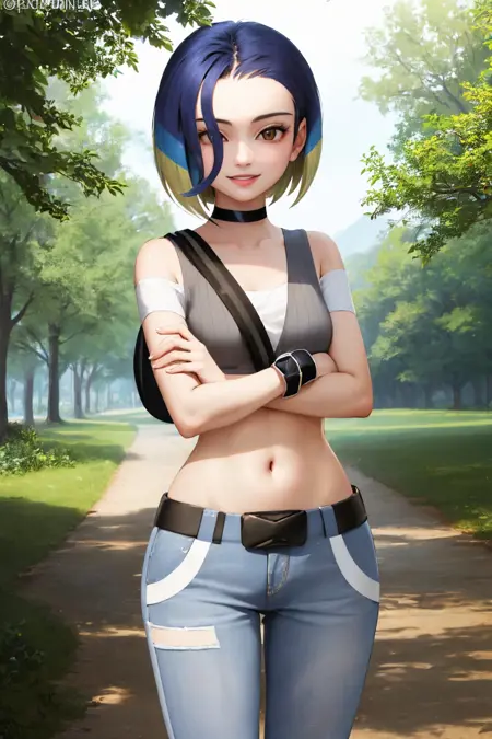 默认服饰: 露脐上衣、裤子、项圈、腰带、露腹