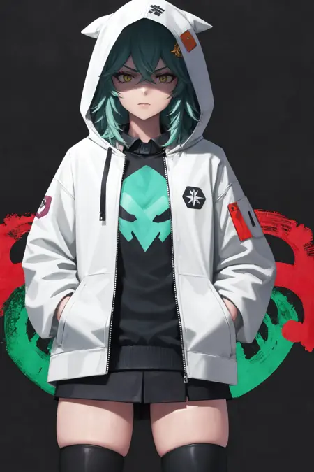 antonina, 모자, 헤드폰, 재킷, 셔츠, 장갑, 허벅지 긴 양말