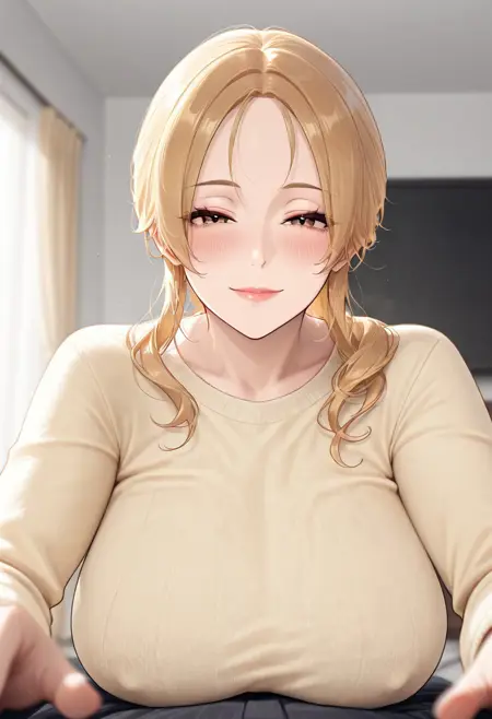 Sofia, milf, mature, brown eyes, blonde hair, long hair, large breasts, big ass, wide hips