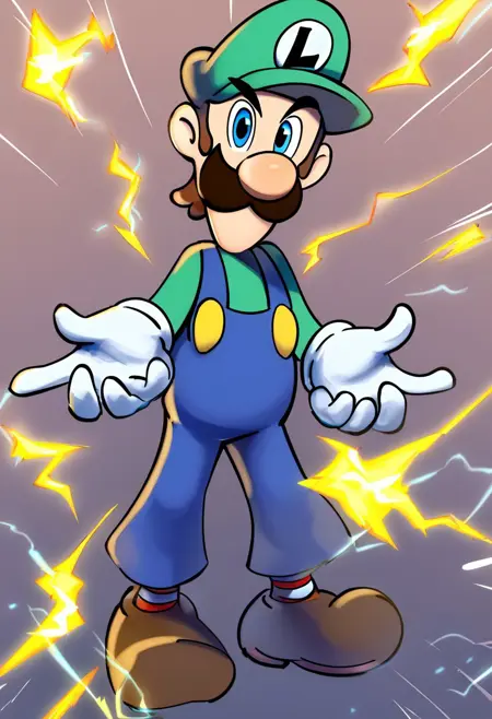 ITLuigi,cartoon-style,brown hair, black eyes,slim, moustache, round nose,