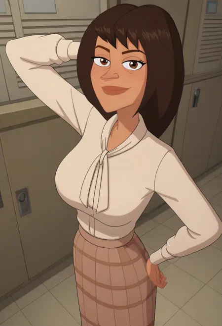 1girl, solo, Elizabeth_MML, olive skin, dark brown eyes, shoulder-length hair, dark brown hair, pointy nose