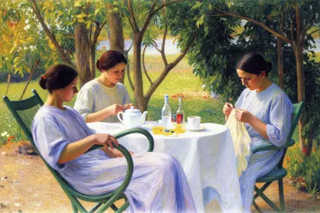 종종 이상화된 정원이나 고대 시골 풍경에 등장하는 그의 인물(대개 여성이나寓意적 존재)은 마치 다른 시대에서 온 듯한 느낌을 줍니다.