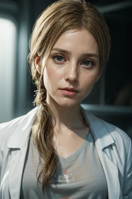 プロンプト:Ultra-HDの見事で繊細なフルカラーの肖像画、36歳の女性、細部まで描かれた顔、長い金色の髪、明るい目、白いコート、グレーのTシャツを着用、壮大なキャラクター構成、シャープなフォーカス、自然光、サブサーフェスディスパージョン、f2、35mm