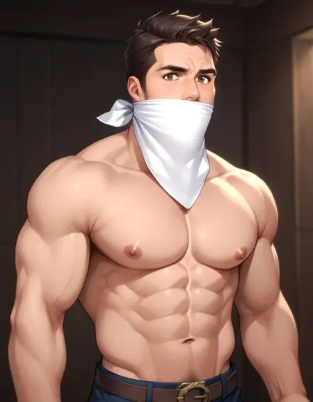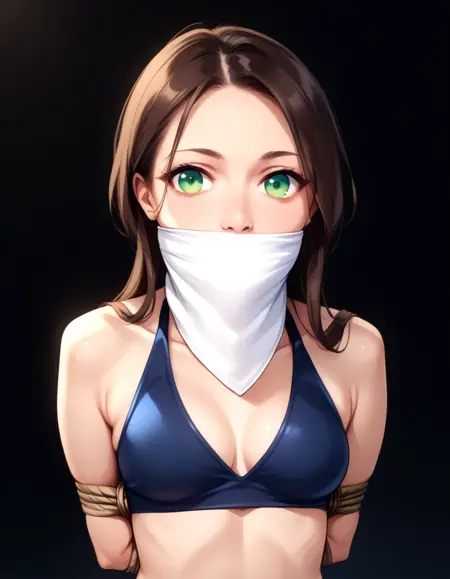 bandana gag, otm gag, mouth covered, nose visible, face partially covered