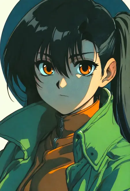 90retrostyle, retro artstyle, film grain, 1girl, solo