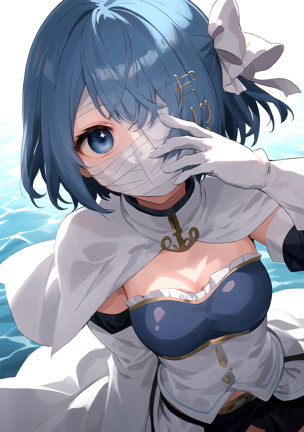 一只眼睛被遮住,胸甲,嘴巴被遮住,白色斗篷,强音,头部缠绕绷带