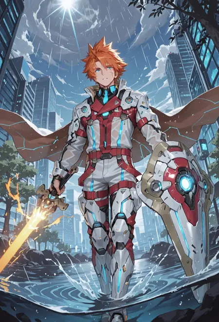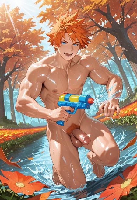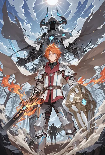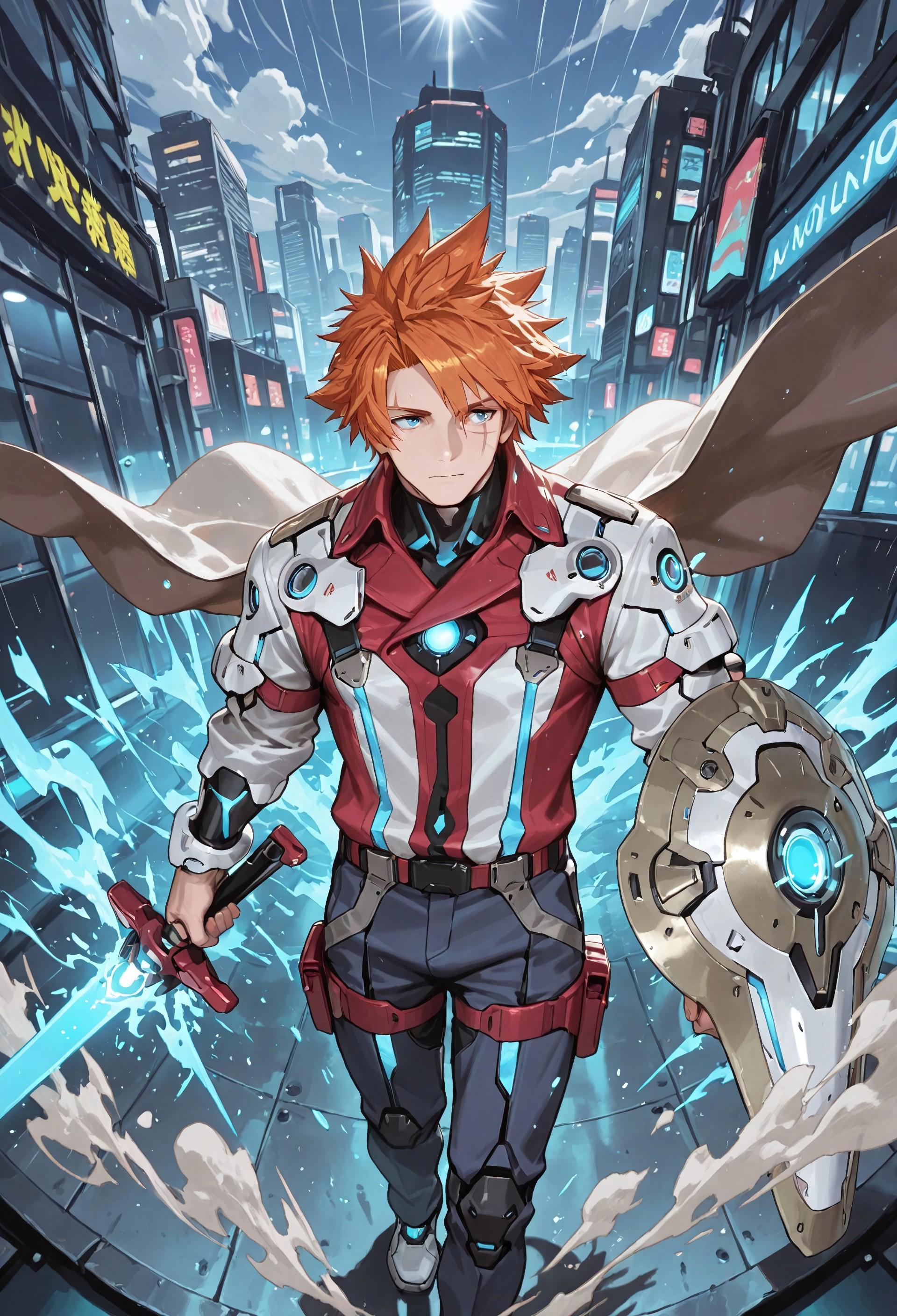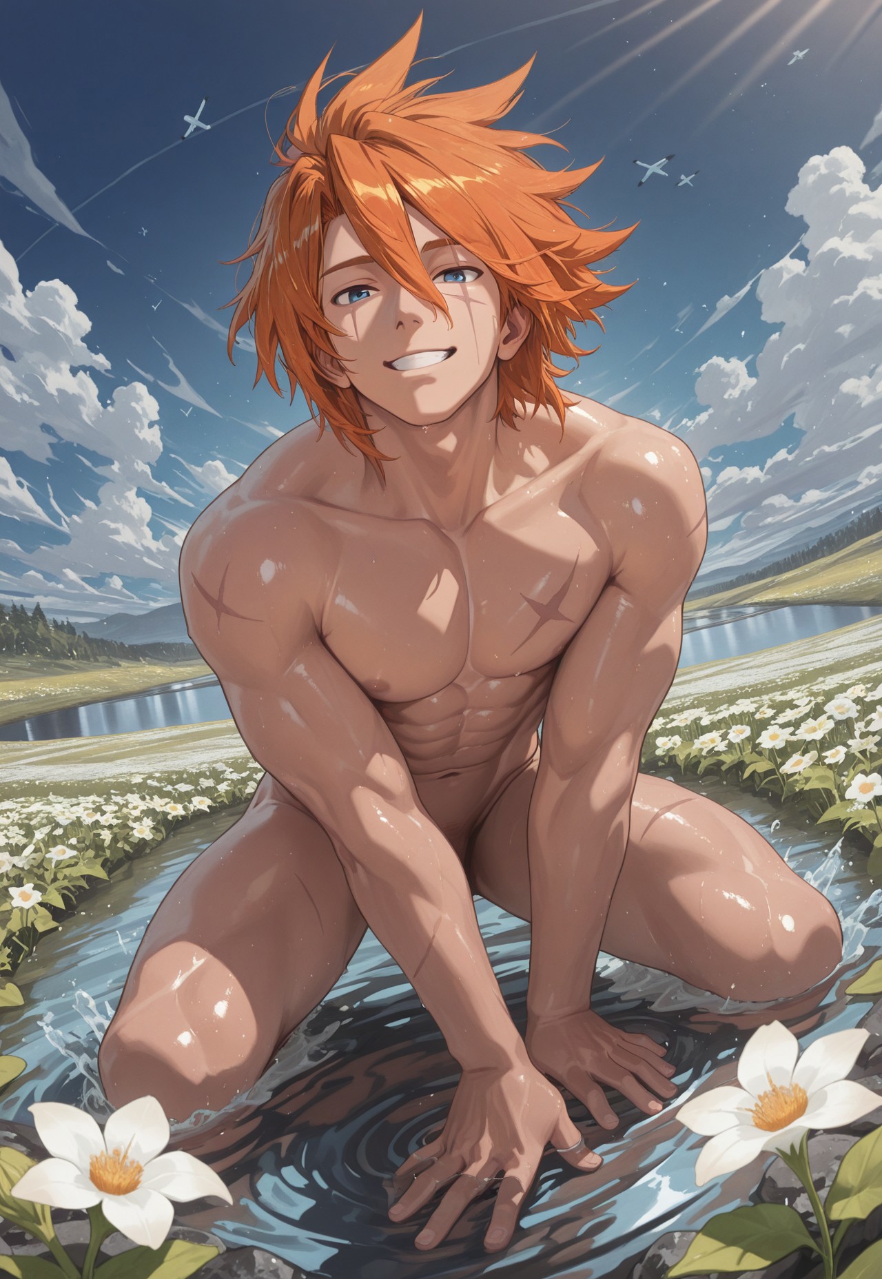 1boy, ginger short hair, spiked hair, blue eyes, scar on nose, scar across eye,