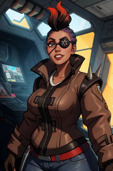 reyna, eyepatch, brown eyes, - multicolored hair, mohawk, or pompadour,