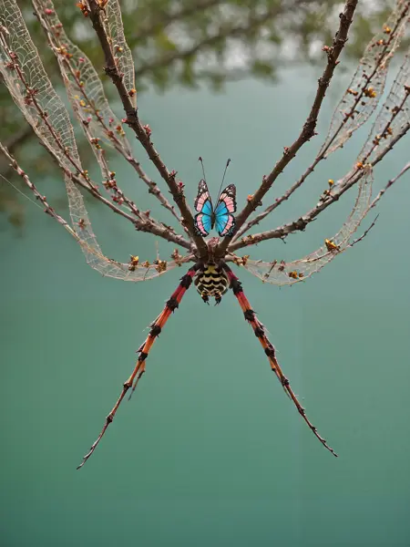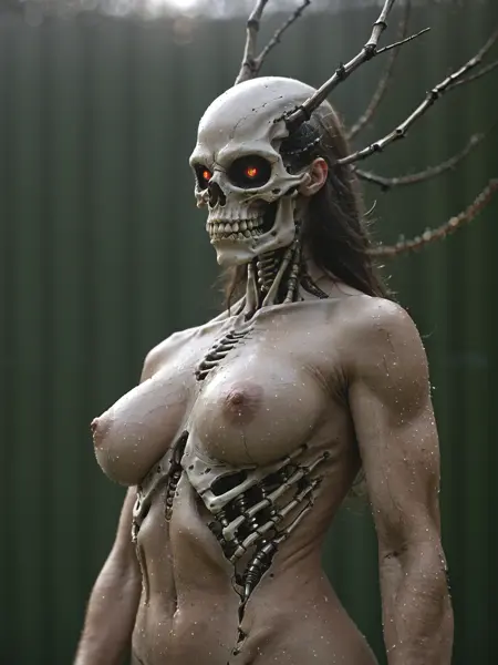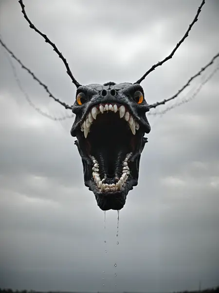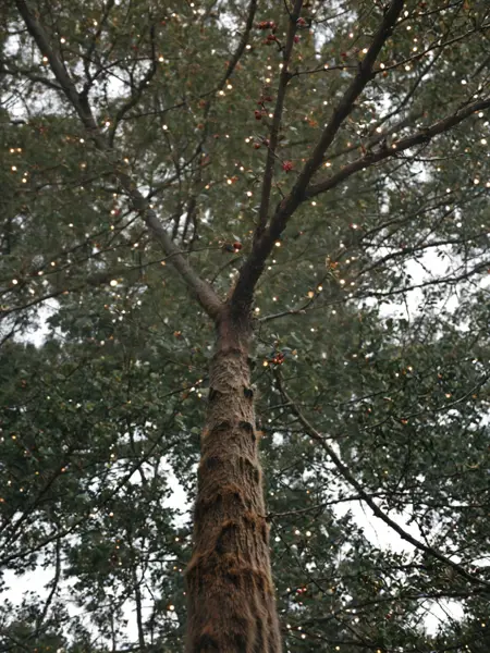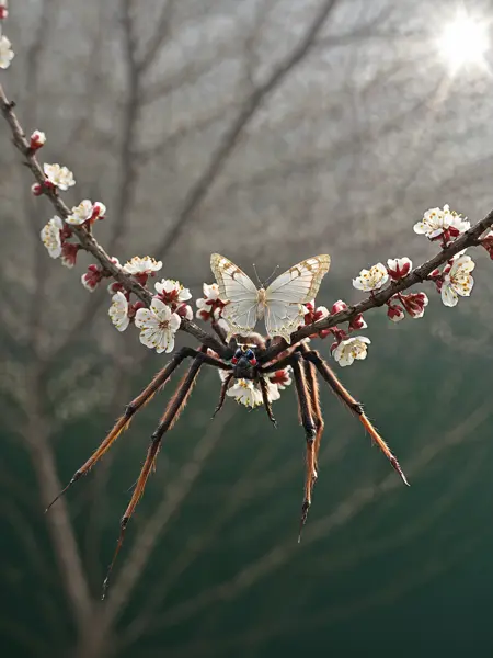It renders branches with blossoms, grey sky, shallow depth of field with white blossoms in creamy bokeh. Sometimes it can render the green metallic fence in blurry background.