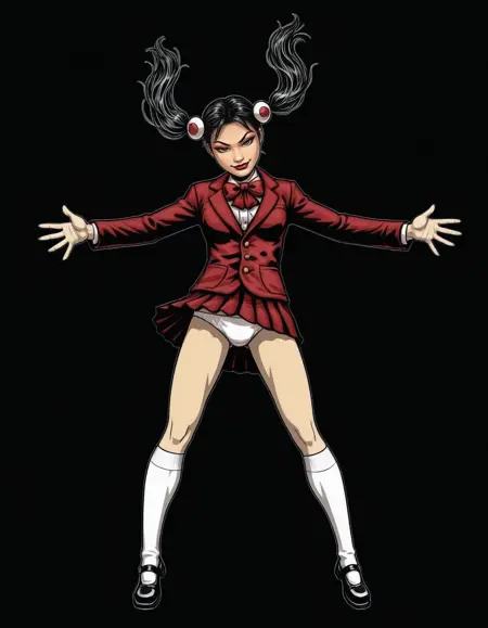 xyurikox, black hair, long hair, twintails, hair ornament, brown eyes, lipstick