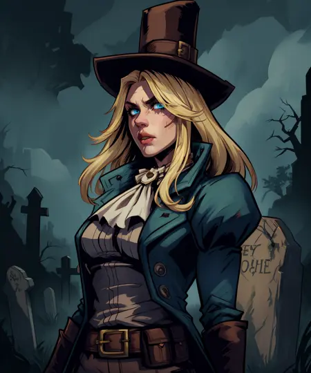 top hat, coat, pants, fingerless gloves, belt, ascot,