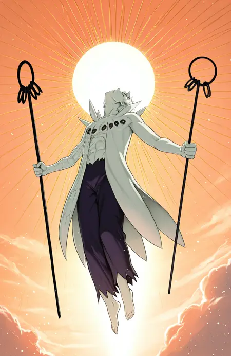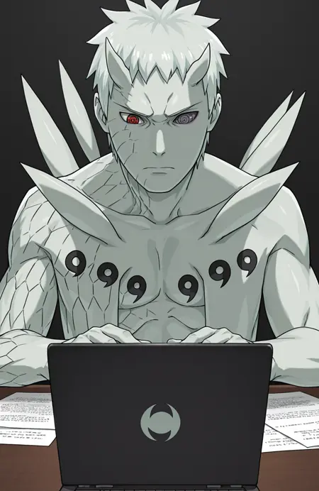 IllustriousはJuubitoが大嫌いです。非対称で異色の虹彩を持ち、非標準的な目の模様と対称的な幾何学的タトゥーを持つ、ほぼ人間のようなキャラクターです。Juubitoの力はILXLにおいても彼に有利に働いていません。