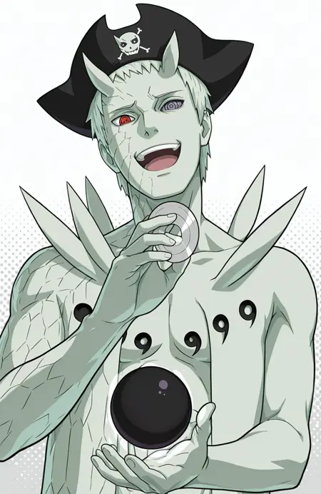 色の再現性はそれなりですが、Obitoをより蒼白(緑がかった色ではなく、青がかった色)にしたい場合は、「pale skin」とプロンプトしてください。