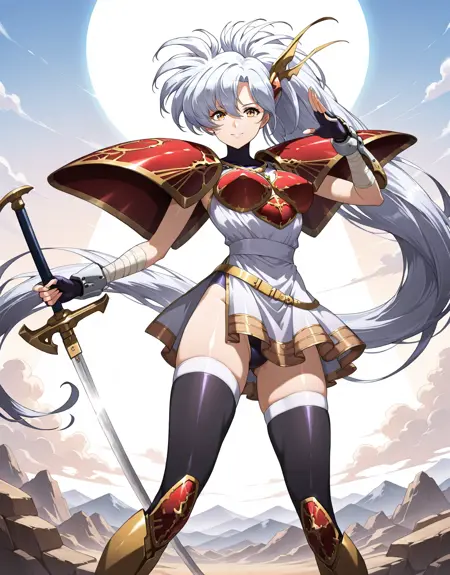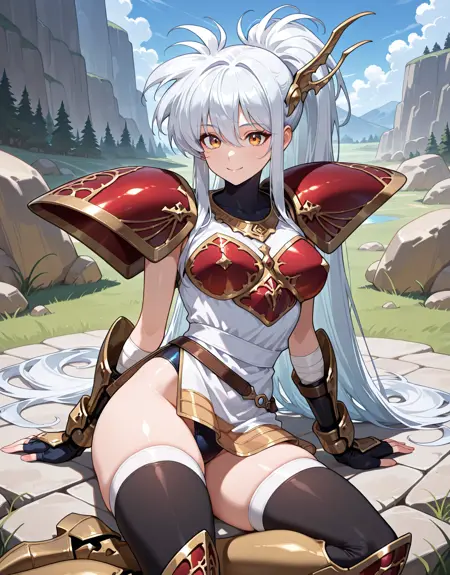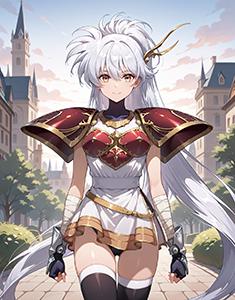 "紧身衣, 白色连衣裙, 无指手套, 小臂护甲, 肩甲, 胸甲,"