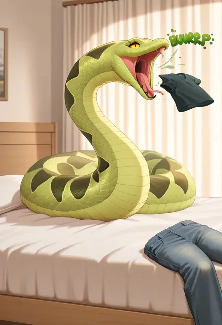 主要触发词为“burping_clothes”,你也可以根据喜好添加如“大肚子”等标签(或不添加)。你还可以通过使用如“burping up red shirt”(呕出红色衬衫)、“burping up underwear”(呕出内衣)等标签来更换被喷出的衣物或物品。