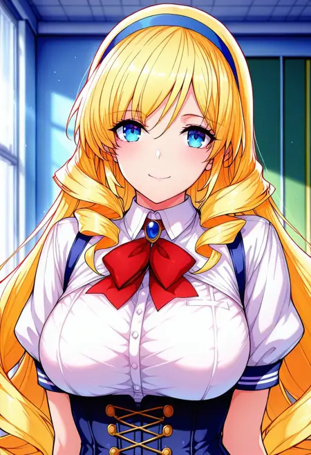 高宮志恩:ShioBR、金髪、青目、長い髪、青いヘアバンド