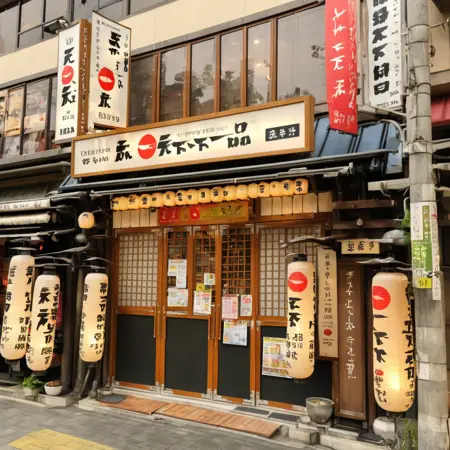 tenkaippin, 포스터(객체), 풍경, 간판, 가게, 종이등, 야외, 도로, 거리, 종이등, 창문, 음식, 상점 앞, 문, 건물, 밤, 인도, 등불, 전등대, 사실적, 사진 배경, 사진(매체)