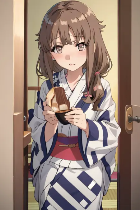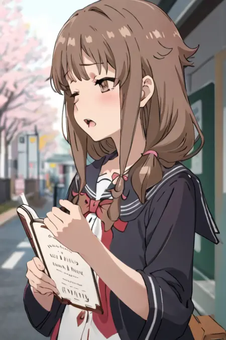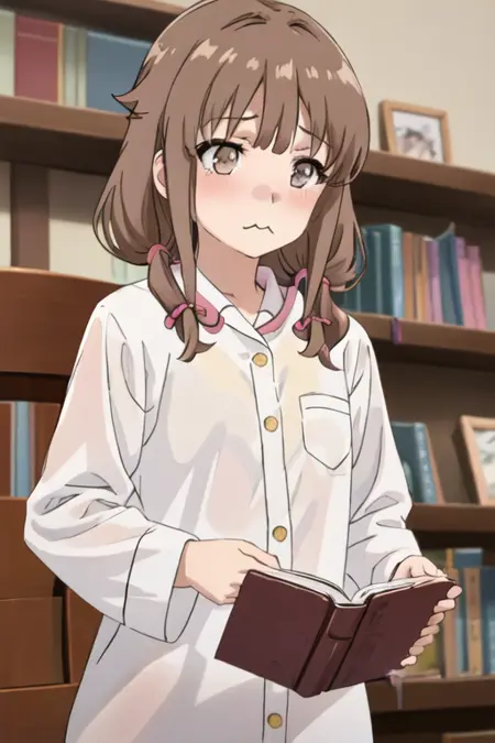 トリガー語はazusagawa_kaede_seishunbutayarouであり、推奨タグはbest quality, masterpiece, highres, solo, {azusagawa_kaede_seishunbutayarou:1.15}, brown_hair, brown_eyes, bangs, long_hair, blushです。