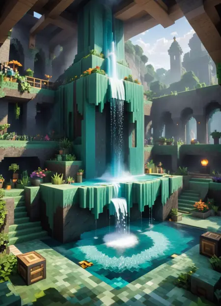 사전 렌더링된 마인크래프트 AI 생성 사진을 기반으로 하며, 맞춤형 SDXL 모델을 활용합니다.