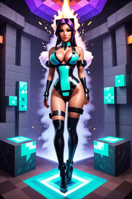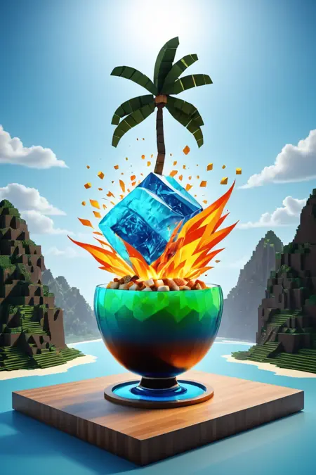 사전 렌더링된 마인크래프트 AI 생성 사진을 기반으로 하며, 맞춤형 SDXL 모델을 활용합니다.