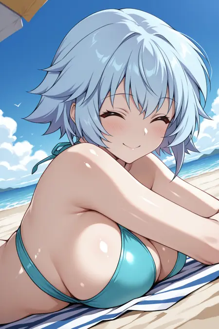 트리거 단어는 "tnshi"이며, "밝은 파란색 머리, 단발, 붉은 눈"이 필수입니다.