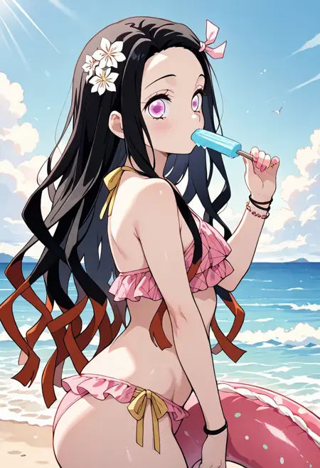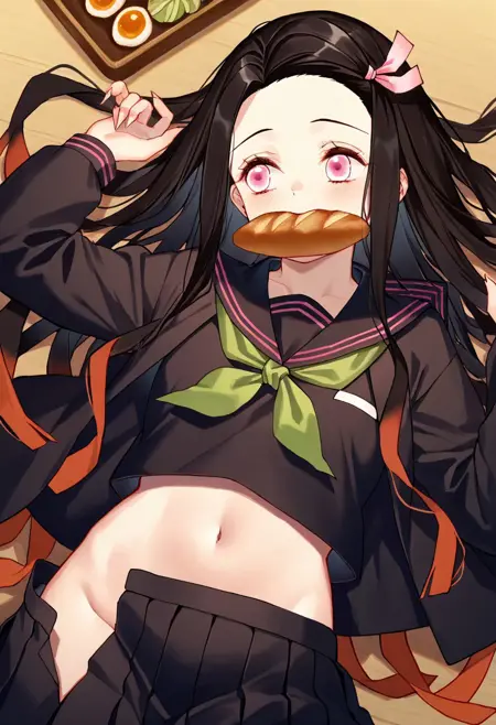 | 训练词汇 | nezuko kamado, black hair, forehead, hair ribbon, long hair, multicolored hair, pink eyes, orange hair, slit pupils, wavy hair, two-tone hair,已复制! bamboo, bit gag, gag, gagged, asa no ha \(pattern\), checkered sash, haori, japanese clothes, kimono, long sleeves, obi, pink kimono, sash, wariza, wide sleeves,已复制! |