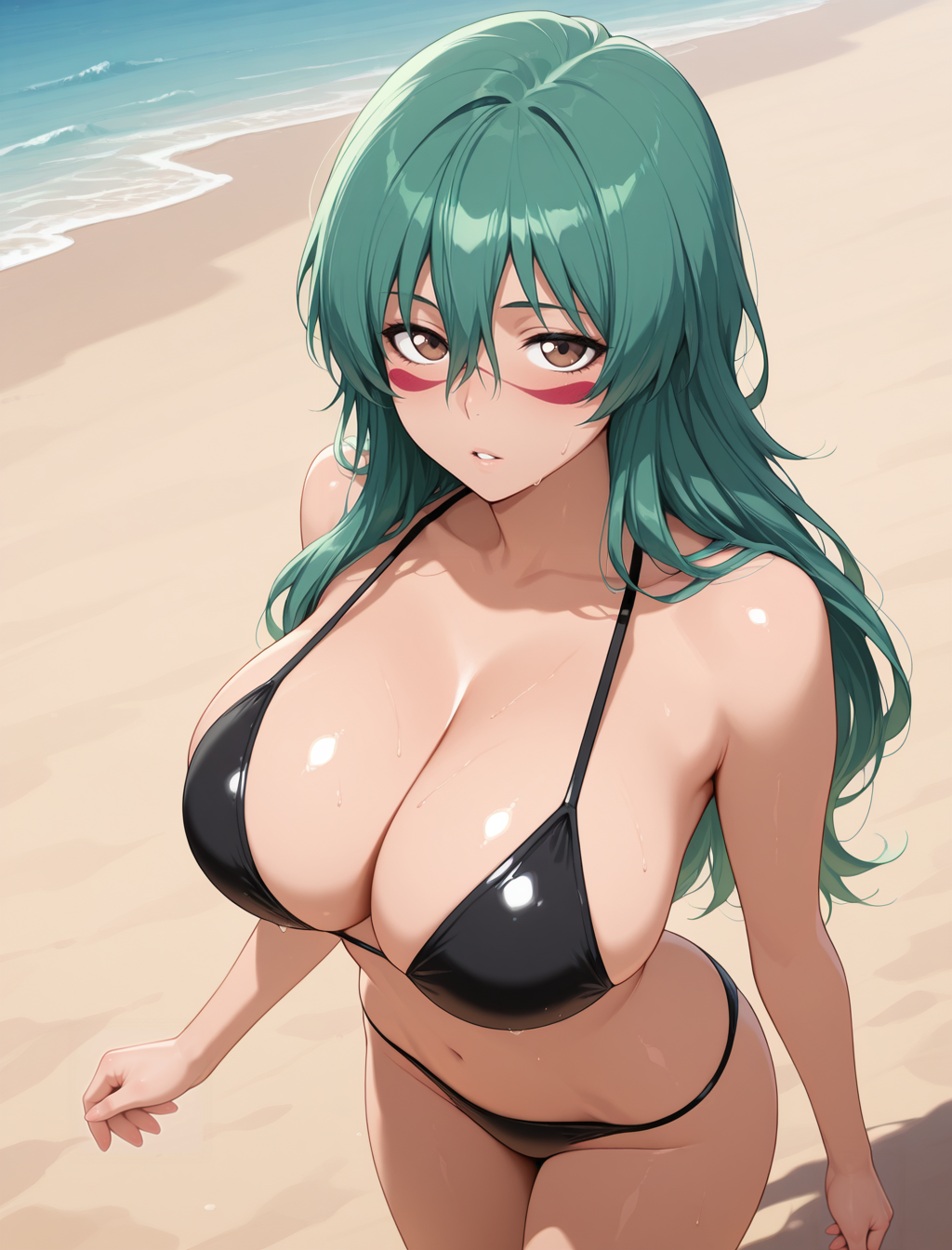 Tag & Original: Nel_Tu_NYX, brown eyes, green hair, long hair, facial mark