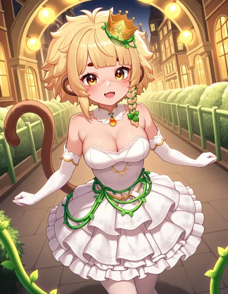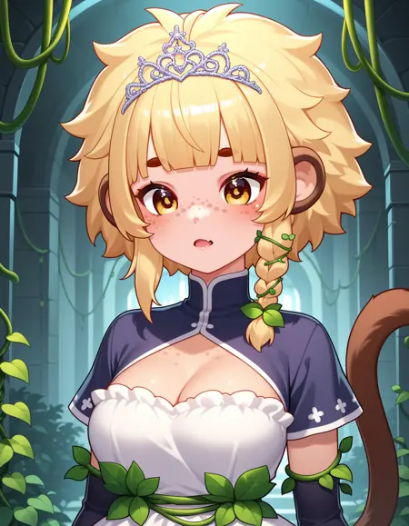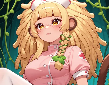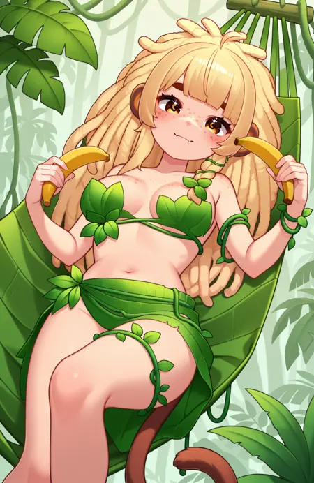 ヒント: 彼女の目が形状を維持するように、ADetailerで lora:BananaJuju\_v2:1 bananajuju, banana pupil, crescent を使用してください。