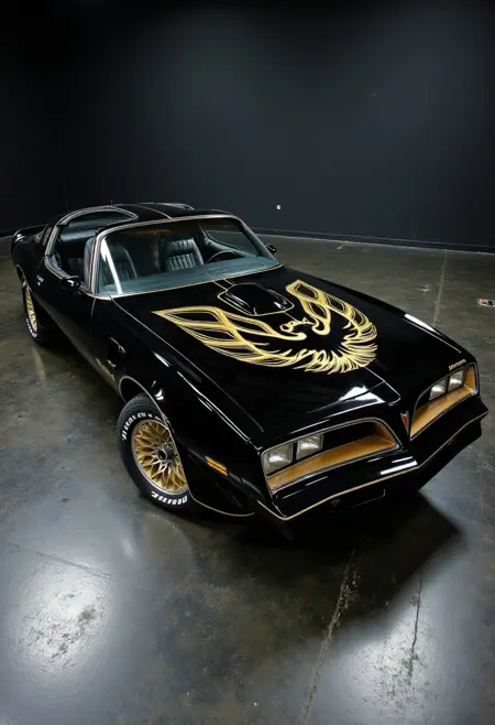 77 Firebird (Firechicken) CFH LoRAは、1977年式ポンティアック・トランザムの生々しくも象徴的なマッスルカーの美的感覚を捉え、写実的・スタイリッシュな両方の生成に最適化されています。高解像度の多角的ショットを学習させたこのモデルは、F1r3cH1cK3n_Trans-Amを、特徴的なフードのバードマークやシェーカースクープ、広がったフェンダー、ハニカムホイール、攻撃的なフロントファシアに至るまで、忠実に再現します。クラシックなブラック&ゴールドや、赤や青の鮮やかなカスタムラッピングでレンダリングされても、このLoRAはクリアなジオメトリ、時代に準拠したトリム、そして深い反射でそのビジュアルアイデンティティを維持します。