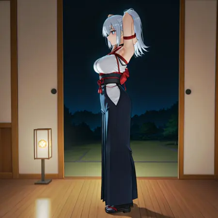 这是一个关于“Usagi Tie”(又称兔绳、枕绳、Waki Zarashi 脇晒し……随便你怎么叫)的测试Lora。该Lora可帮助你生成此类图像。大部分细节位于背面,因此我建议使用如{从后方 | 从后上方 | 从后下方 | 从侧面}之类的视角提示,以获得更精细的图像。