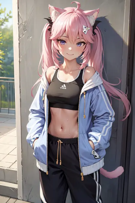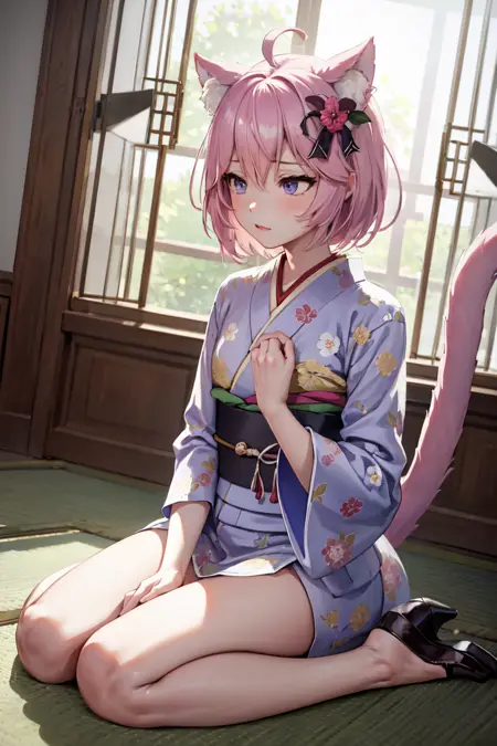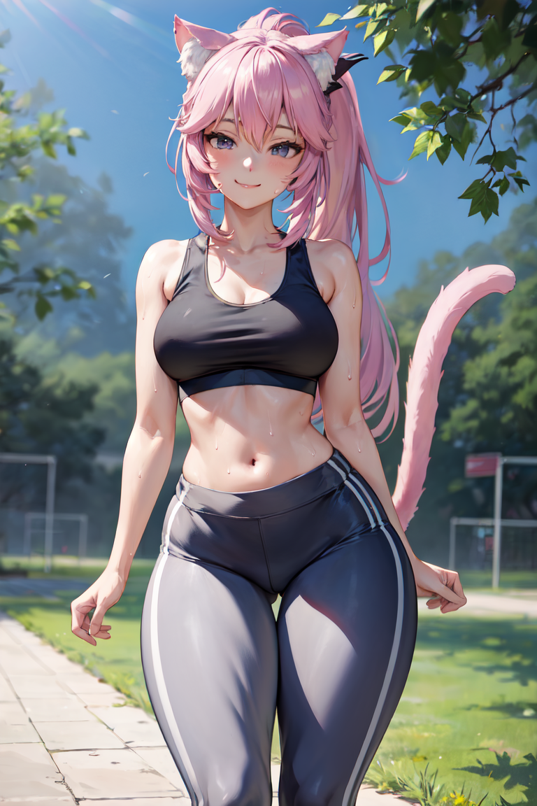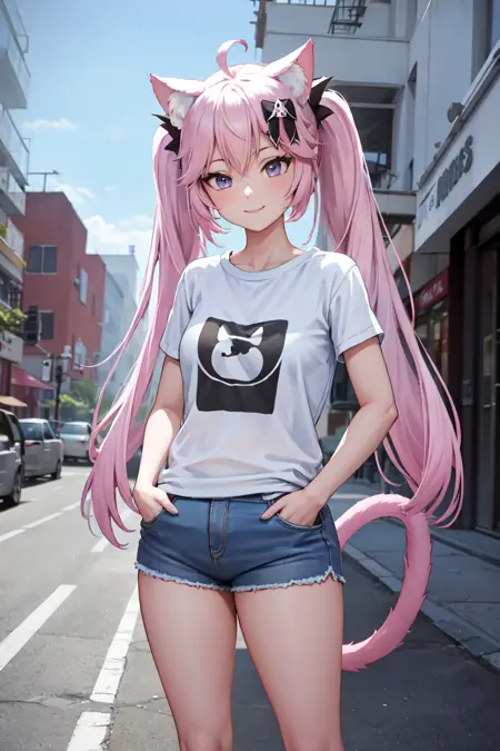 如需,您可以添加 "cat tail",但请注意 SD 对尾巴的生成效果不佳。