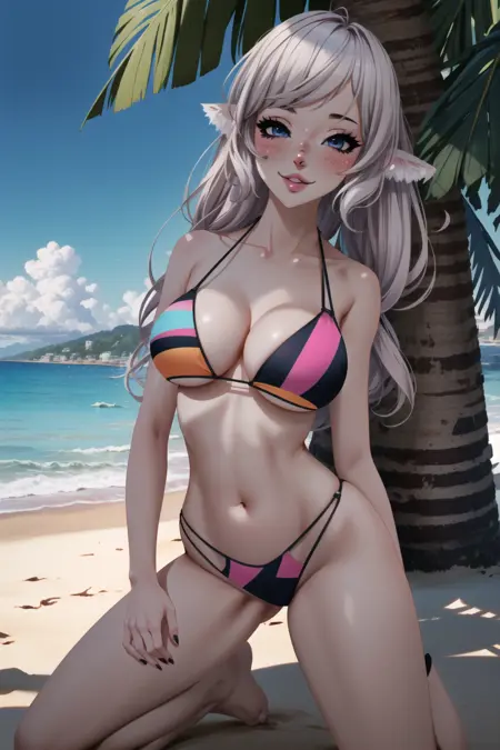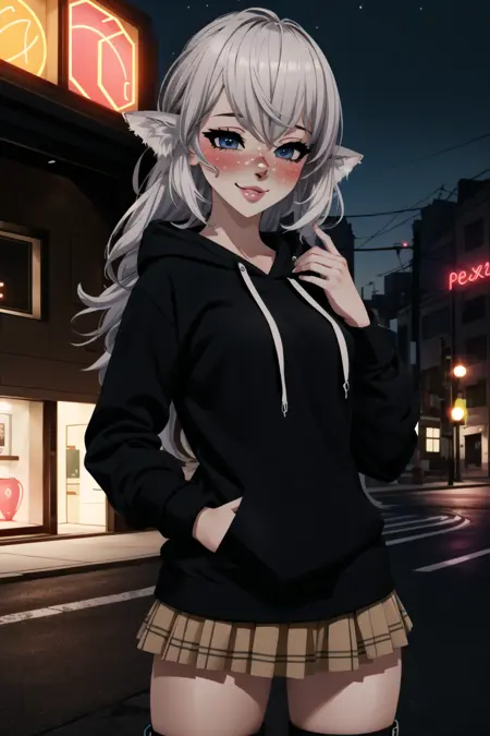 - デフォルトの衣装プロンプト: ガーターベルト、太ももストラップ、クロップトップ、ショートショーツ、取り外し可能な袖、(黒い衣装)
